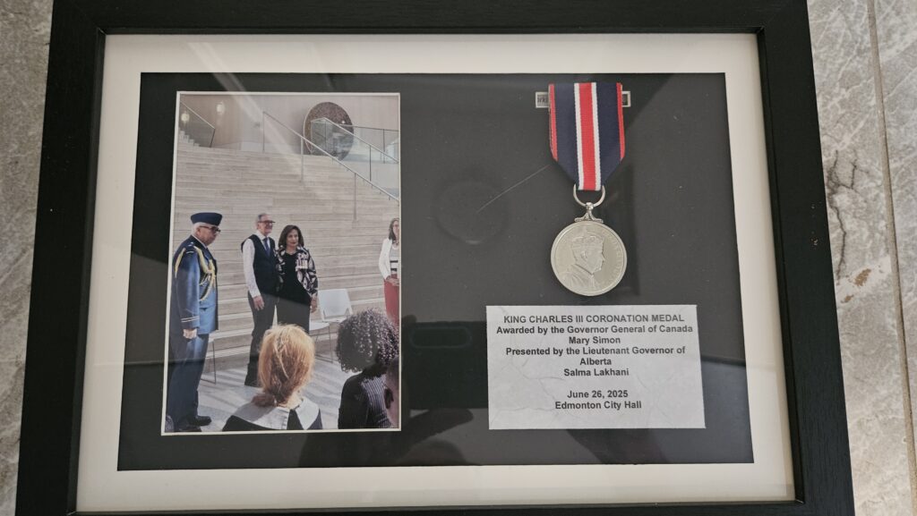 The presentation ceremony took place on June 26 2025 at Edmonton City Hall where recipients were presented with their medals by Lieutenant Governor of Alberta – Salma Lakhani.